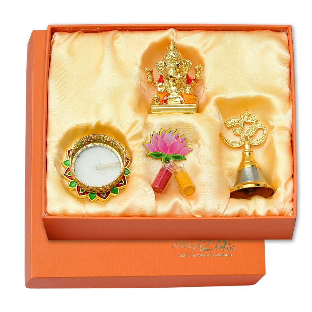 Ladbhi Ganesha With Om Bell & Om Diya