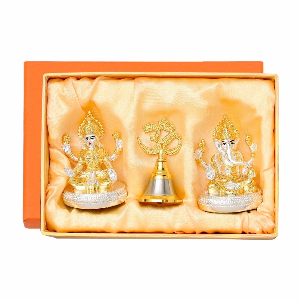 Two Tone Ganesha & Lamxi Ji With Om Bell