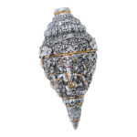 The Antique Silver Divine Ganesh Shankh Idol by Aarya24KT is a stunning spiritual artifact that embodies the grace and wisdom of Lord Ganesh. Intricately crafted with fine detailing, this silver-plated conch shell is a symbol of prosperity, success, and removal of obstacles. Ideal for puja rituals, home decor, and gifting, it enhances the spiritual ambiance of any space. As per Vastu Shastra, placing this shankh in the north-east or east direction invites positive energy, prosperity, and divine blessings. Whether used in daily prayers, temple rituals, or meditation, this Ganesh Shankh radiates a sacred aura, making it an essential piece for every devotee.
