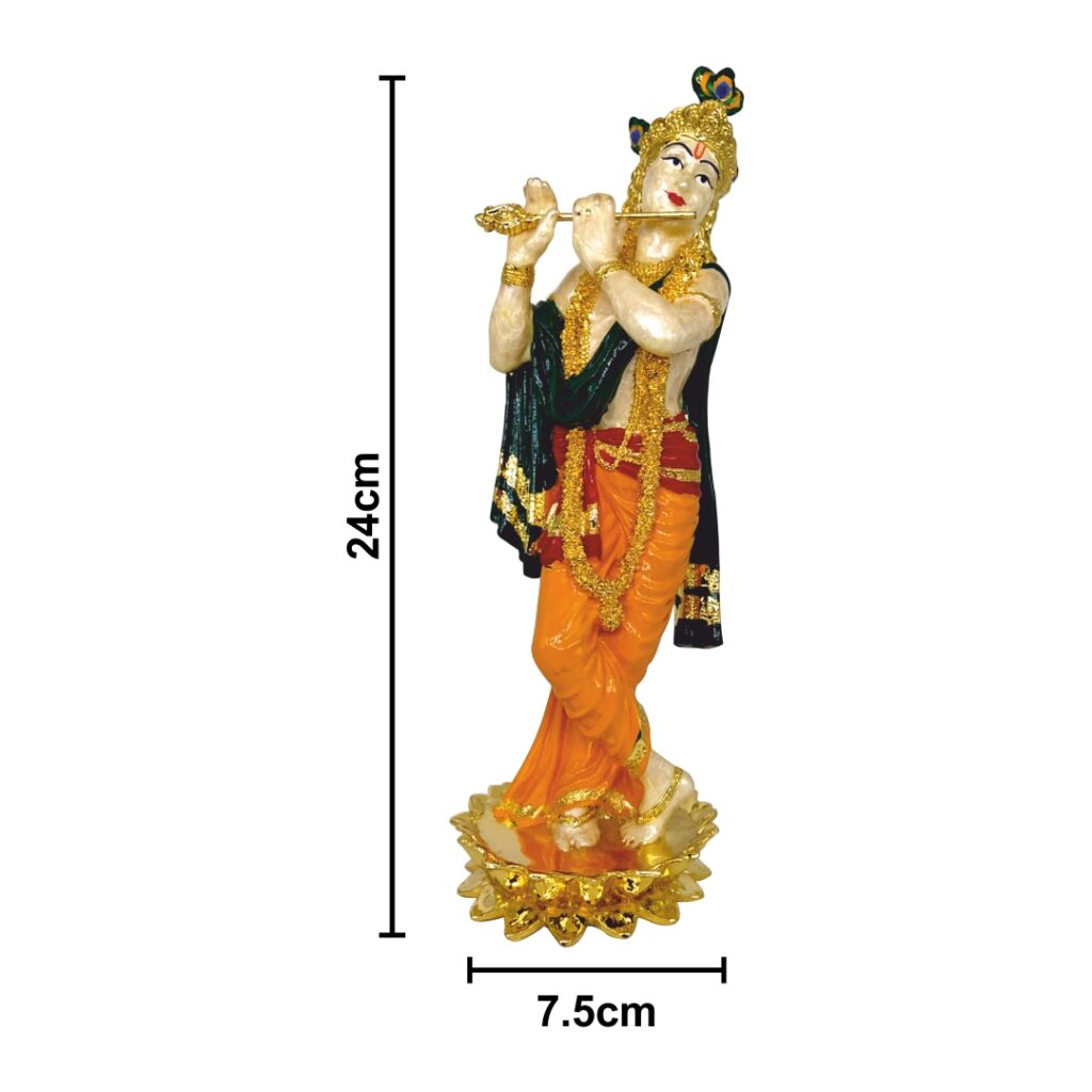 Elevate your space with the Aarya24kt Pearl White Lotus Krishna (7.5cm x 8.5cm x 24cm), a masterpiece of devotion and luxury. Crafted with premium gold-plated detailing, this idol showcases Lord Krishna standing gracefully on a lotus, symbolizing purity and divinity. Ideal for pooja rooms, home décor, and gifting, this exquisite idol radiates blessings, positivity, and artistic brilliance—a true spiritual treasure.
