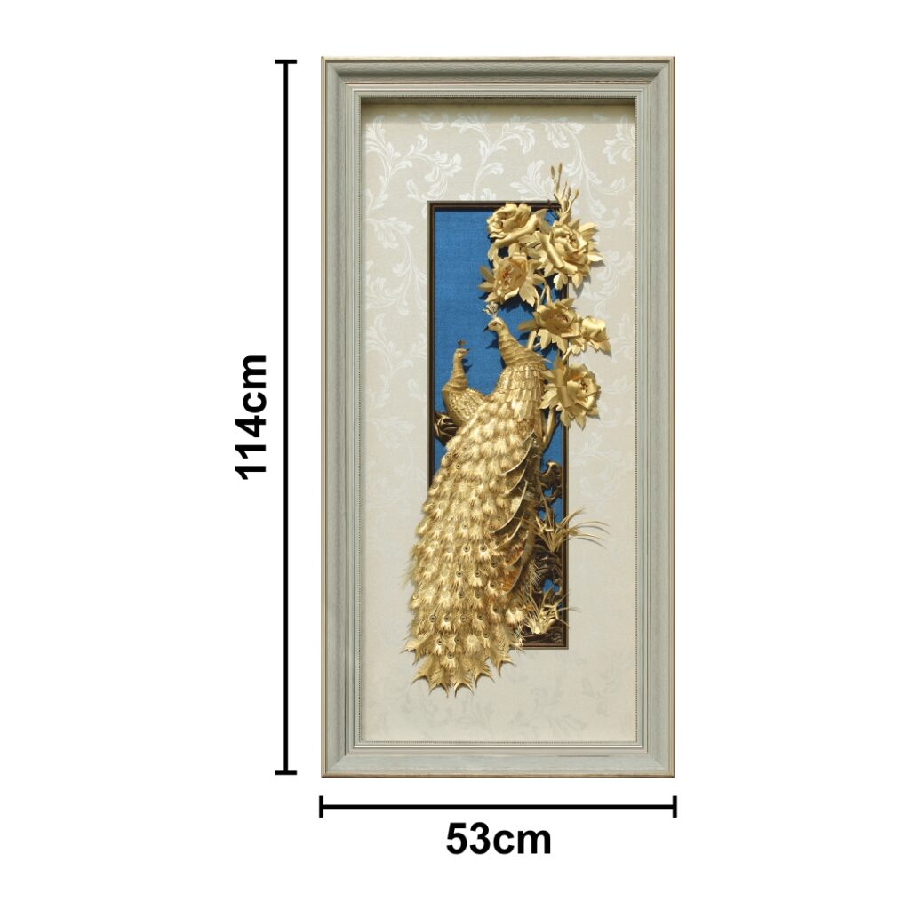 Introduce timeless elegance and regal charm to your interiors with Aarya24KT’s Extra Large Pair Shiny Peacock (White) Frame, a stunning fusion of artistry and luxury. Crafted with pure 24KT gold foil, this majestic depiction of two peacocks perched amidst blooming flora captures the grace, love, and natural splendor associated with India’s national bird. The classic white frame complements modern as well as traditional décor, adding a sophisticated and luxurious touch to any setting. Perfect for executive offices, hotel lobbies, corridors, entrance foyers, living areas, or high-end gifts, this extra-large frame adds both beauty and meaningful value. According to Vastu and Feng Shui, the peacock is a symbol of wealth, harmony, rebirth, and good vibes. Combined, they represent love, friendship, and good fortune, which makes them ideal for newlywed houses or couples’ settings.
