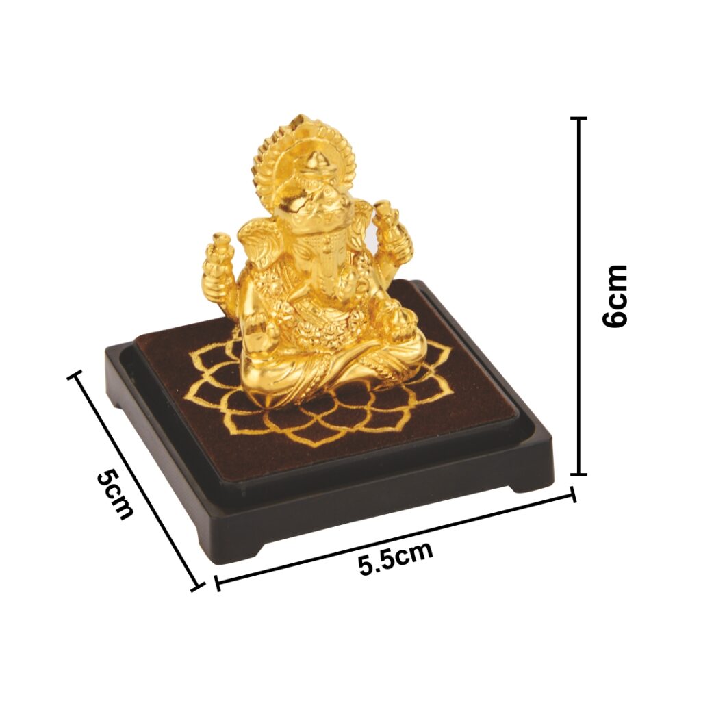 This exquisite Ganesha idol from AARYA24KT is a beautifully crafted piece that radiates divine energy and elegance. Made with 24KT gold foil, the idol captures Lord Ganesha in a seated posture, symbolizing wisdom, prosperity, and the removal of obstacles. The intricate detailing—from the finely sculpted crown to the ornaments and the sacred objects in his four hands—showcases masterful craftsmanship and devotion. Ideal for placement in your home temple, living room, or work desk, this Ganesha idol is believed to attract positivity and success. It also makes for an auspicious gift for weddings, housewarmings, festivals, or corporate occasions, symbolizing blessings and good fortune.Whether used in daily worship or simply as a decorative piece, this divine artifact from AARYA24KT adds a touch of sacred grace to any space. Let Lord Ganesha’s presence guide your life with wisdom, remove all obstacles, and usher in joy and abundance.