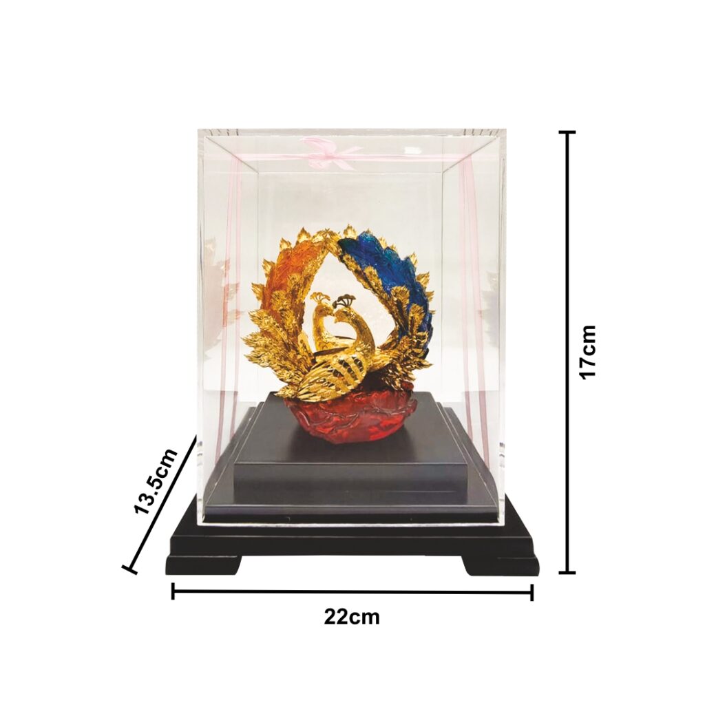 The Couple Peacock Window by AARYA24KT is a magnificent representation of love, harmony, and beauty. Featuring two intricately detailed peacocks poised gracefully on a vibrant red crystal base, their elegantly fanned golden tails form a heart-like frame, symbolizing eternal togetherness.Ideal for living rooms, entryways, or bedroom décor, this piece brings a regal charm and auspicious energy into any space. It makes a meaningful gift for weddings, anniversaries, or housewarmings, celebrating unity and grace.